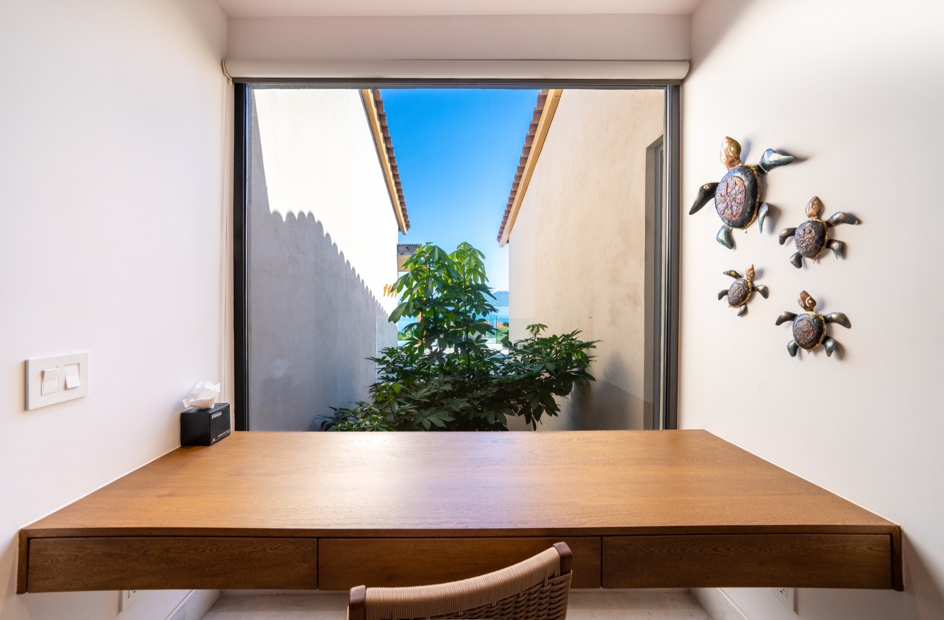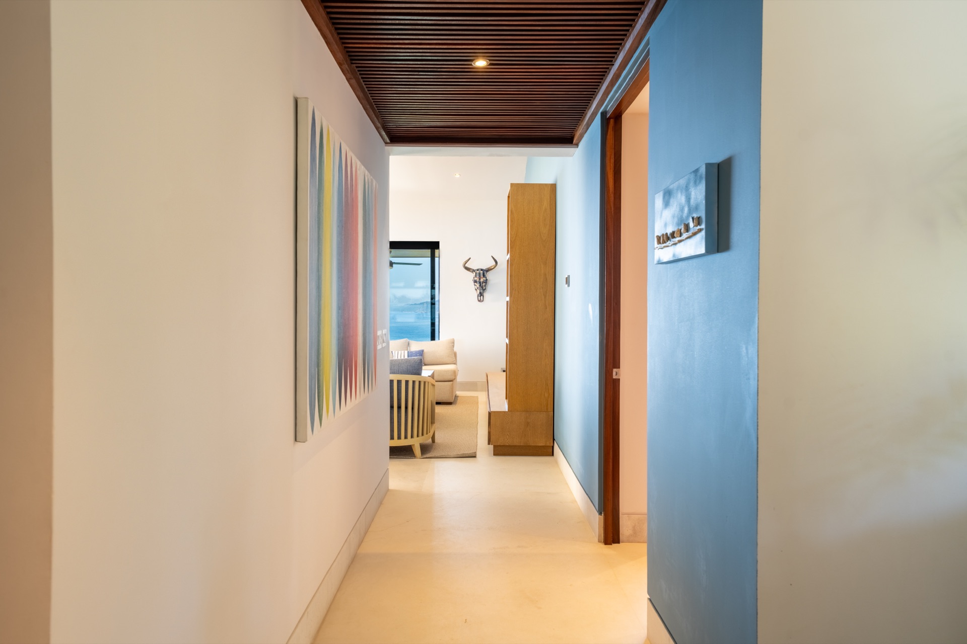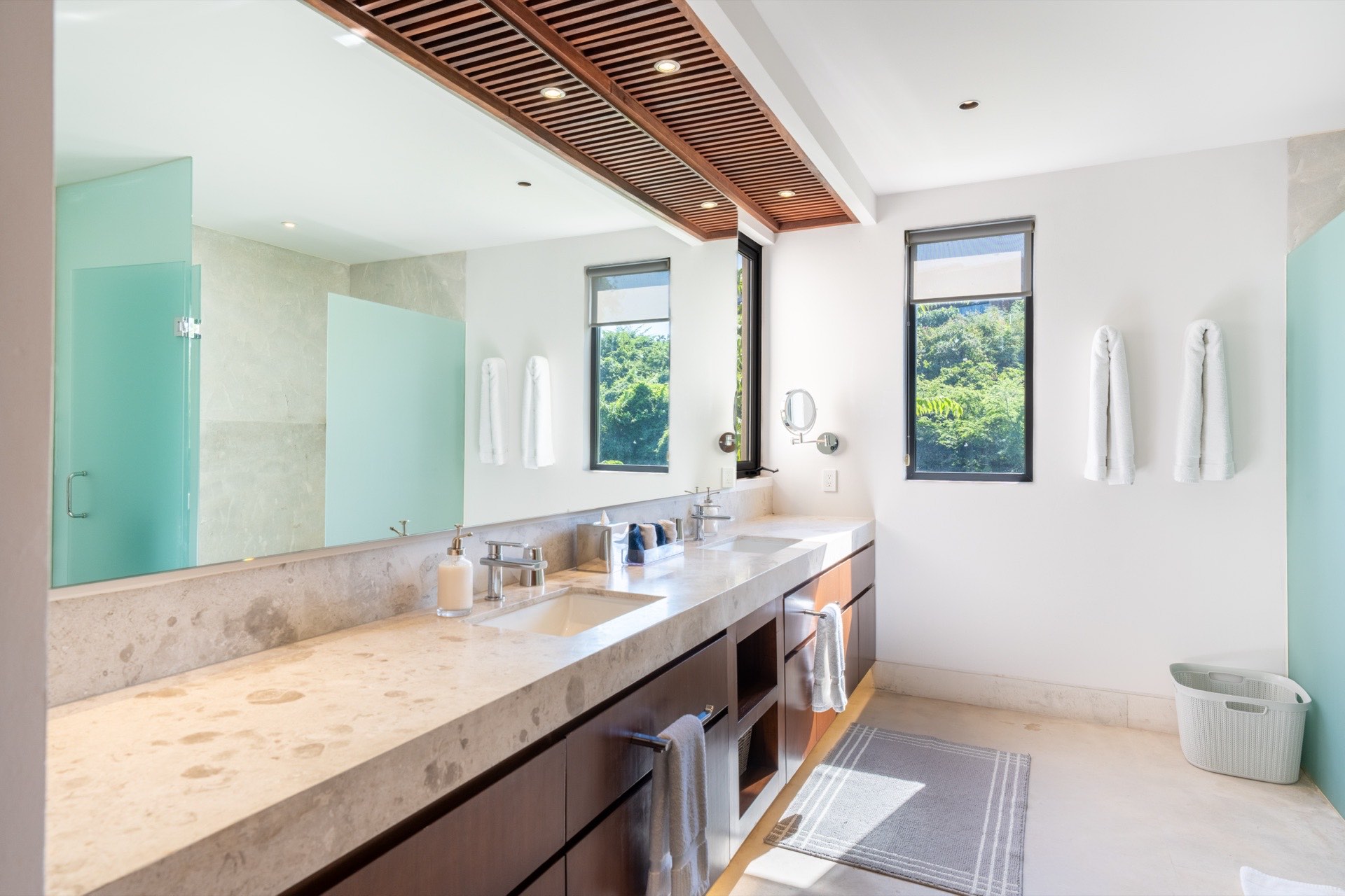Villa La Vista is an elegant four-bedroom two-story retreat set within the exclusive Iyari Estates community at Punta Mita, near the pristine shores of Litibú Beach. Designed with accessibility in mind — featuring accessible-height beds, grab rails for showers and toilets, wide doorways and hallway clearance, and a lit path to the entrance — this villa welcomes all guests with equal comfort and sophistication. Wake up to panoramic ocean views from the main terrace, enjoy breakfast prepared by your private staff, and relax by the infinity pool as the Pacific sun paints the sky in shades of gold and crimson. Every detail has been carefully designed to provide comfort and a serene atmosphere to disconnect and enjoy.